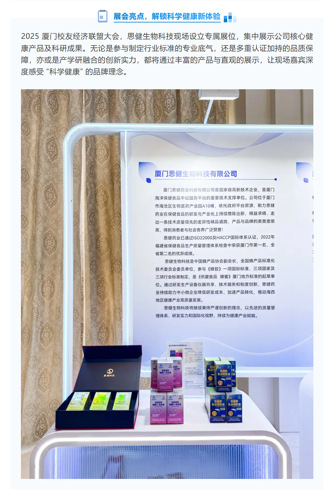 校友經(jīng)濟聚力,健康科技同行!思健生物科技受邀參展 2025 廈門校友經(jīng)濟聯(lián)盟大會,解鎖科學(xué)健康新體驗
